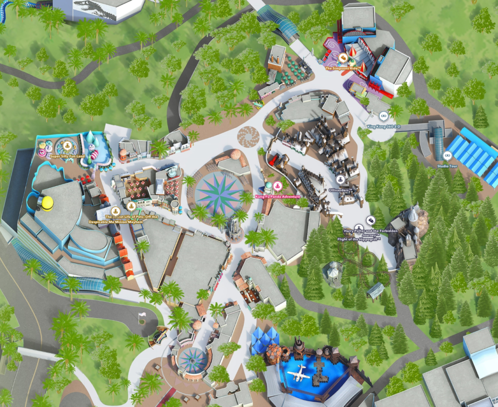 Universal Studios Hollywood Lower Lot Minion Land The Secret Life of Pets: Off the Leash Despicable Me Minion Mayhem (3D content) Production Plaza Kung Fu Panda Springfield The Simpsons Ride (3D content) Studio Tour King Kong 360 (3D content) Studio Tour The Wizarding World of Harry Potter Ollivanders Harry Potter and the Forbidden Journey Flight of the Hippogriff Waterworld Waterworld Fireworks 2023 New Year's Eve 2022 4th of July